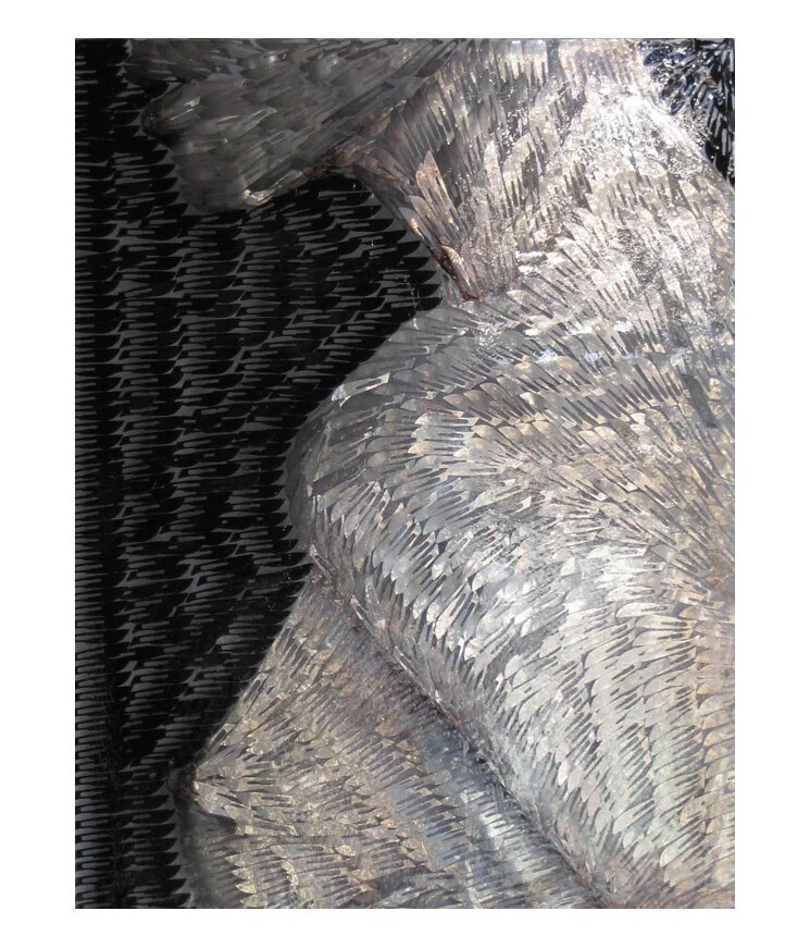 Resculpted, 2007. Oil on scalpel blades in resin on perspex. 64 x 82cm.